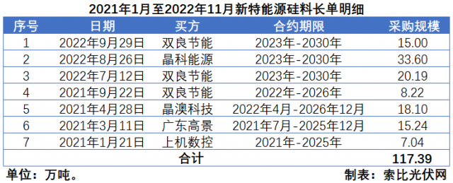 新特能源簽署7筆長單,規(guī)模合計117.39萬噸。