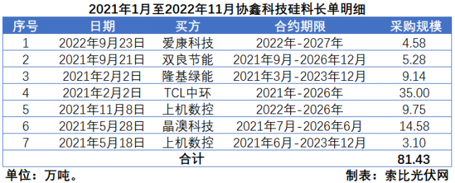 協(xié)鑫科技簽署7筆長單,規(guī)模合計81.43萬噸。