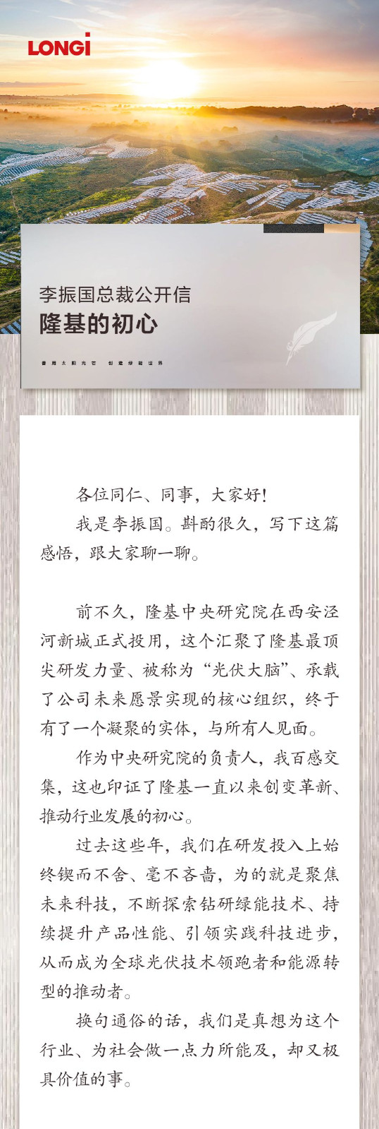 李振國總裁公開信丨隆基的初心