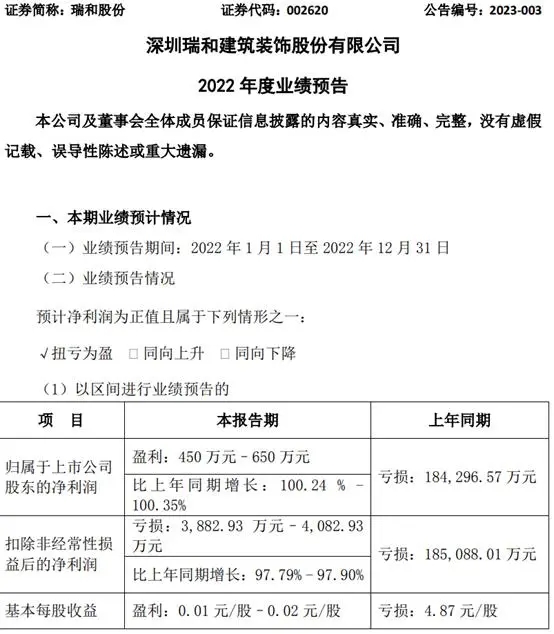 公司業(yè)績(jī)變動(dòng)的主要原因系2021年度我司因受恒大債務(wù)違約影響,基于謹(jǐn)慎性原則,對(duì)相關(guān)資產(chǎn)專項(xiàng)計(jì)提了減值準(zhǔn)備,導(dǎo)致我司2021年凈利潤(rùn)虧損。2022年我司除恒大業(yè)務(wù)外,業(yè)務(wù)保持持續(xù)穩(wěn)定發(fā)展,連續(xù)承接多項(xiàng)優(yōu)質(zhì)裝飾設(shè)計(jì)施工項(xiàng)目,同時(shí)在當(dāng)下國(guó)家雙碳目標(biāo)下,公司依托在光伏領(lǐng)域的先發(fā)優(yōu)勢(shì),開拓光伏EPC工程。目前公司各項(xiàng)業(yè)務(wù)正穩(wěn)步開展,生產(chǎn)正常運(yùn)轉(zhuǎn)。