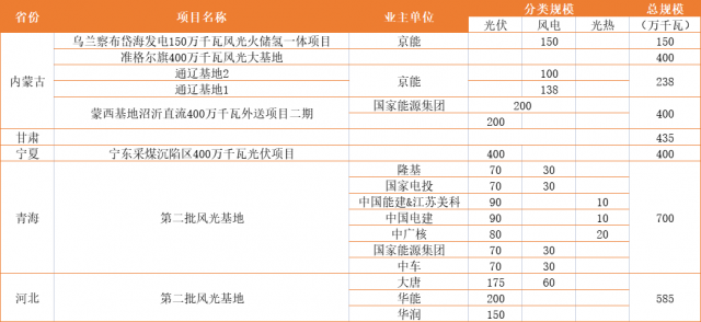 國家級大基地規(guī)劃及業(yè)主名單