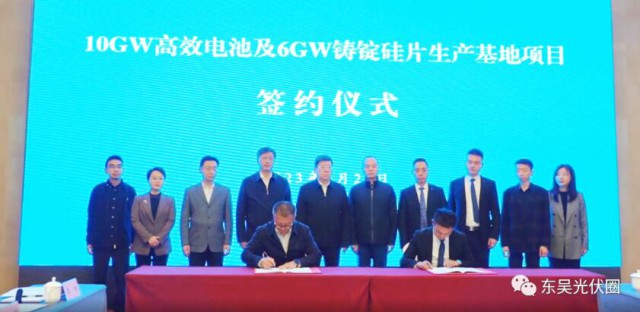 據(jù)了解,無錫合旺新能源科技有限公司是一家專注于光伏電池片的研發(fā)、產銷為一體的科技型企業(yè)。此次簽約的10GW高效電池及6GW鑄錠硅片生產基地項目總投資50.4億元。其中,10GW高效電池項目總投資為39.1億元,達產后營收100億元;6GW鑄錠硅片生產項目總投資為11.3億元,達產后營收30億元。