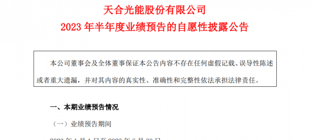 7月25日,天合光能發(fā)布2023年半年度業(yè)績預(yù)告,公司預(yù)計實現(xiàn)歸母凈利潤33.28-37.52億元,同比增長162.14%-195.61%;預(yù)計實現(xiàn)歸母扣非凈利潤35.03-39.27億元,同比增長204.40%-241.32%。