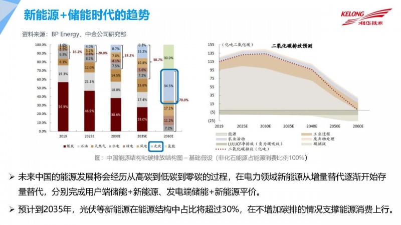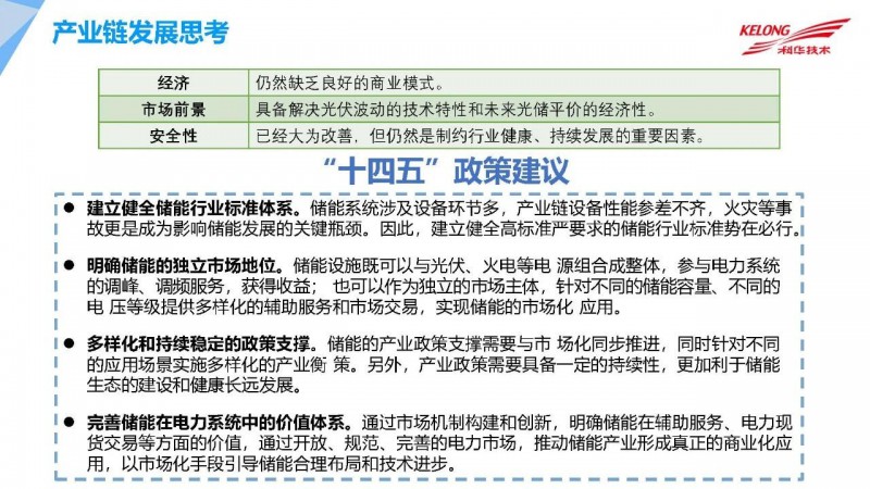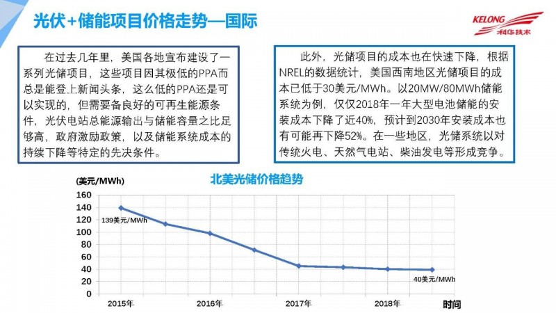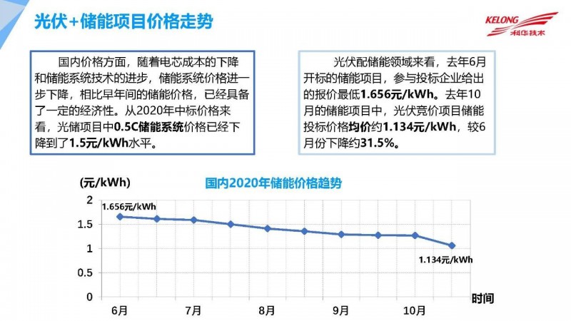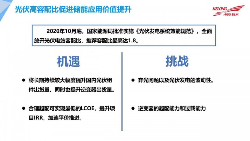 2021年2月3日,由中國(guó)光伏行業(yè)協(xié)會(huì)主辦的“光伏行業(yè)2020年發(fā)展回顧與2021年形勢(shì)展望網(wǎng)絡(luò)研討會(huì)”上,科華數(shù)據(jù)股份有限公司新能源事業(yè)部副總經(jīng)理曹建從多方面介紹了我國(guó)目前光伏+儲(chǔ)能行業(yè)的最新情況以及未來(lái)展望。曹建總經(jīng)理表示,未來(lái)中國(guó)的能源發(fā)展將會(huì)經(jīng)歷從高碳到低碳再到零碳的重要階段,光伏未來(lái)將在我國(guó)發(fā)電體系中占比越來(lái)越高。儲(chǔ)能能夠較好的降低光伏發(fā)電成本,全球角度來(lái)看,儲(chǔ)能項(xiàng)目在五年的時(shí)間內(nèi)降低了近4倍。未來(lái)光伏+儲(chǔ)能將創(chuàng)造更多更加安全可靠的光伏發(fā)電場(chǎng)景,同時(shí)其具備快速響應(yīng)電網(wǎng)調(diào)頻等眾多優(yōu)勢(shì),將是未來(lái)新能源電力市場(chǎng)發(fā)展的必然趨勢(shì)之一。