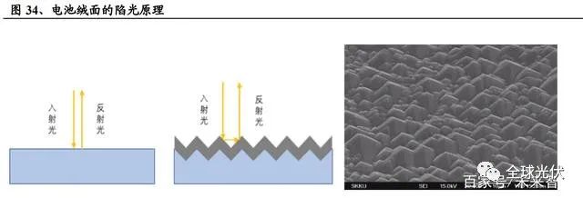 由于硅片在切割過程中表面會(huì)產(chǎn)生大量的油污,金屬污染和機(jī)械損傷,因此 要對硅片進(jìn)行酸洗(多晶)或者堿洗(單晶),利用各向同行和各向異性原理對 硅片表面進(jìn)行腐蝕,去除硅片表面機(jī)械損傷層;清除表面油污和金屬雜質(zhì),形成 潔凈表面;形成起伏不平的絨面,使入射光在表面進(jìn)行多次反射和折射,延長光 程,減少光學(xué)損失,金剛線切割硅片經(jīng)過清洗制絨后表面反射率可從50%降低至 15%以下。