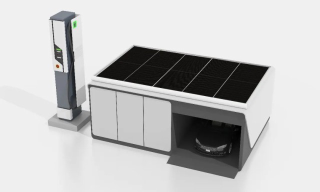 中來匈牙利墻體結(jié)構(gòu)的光伏車棚項目,只需要30塊組件,連接充電樁,利用棚頂?shù)墓夥M件發(fā)電,可以解決至少6輛新能源車的充電問題。