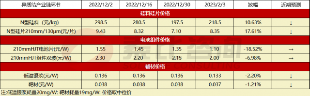近期異質(zhì)結(jié)產(chǎn)業(yè)鏈價(jià)格