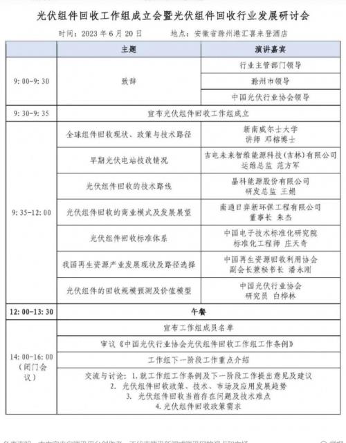6月7日,中國光伏行業(yè)協(xié)會(huì)發(fā)布通知,協(xié)會(huì)將于2023年6月20日在安徽滁州召開“光伏組件回收發(fā)展研討會(huì)”,從光伏組件回收的現(xiàn)狀、技術(shù)路徑、規(guī)模預(yù)測、價(jià)值與經(jīng)濟(jì)性分析、商業(yè)模式等維度,與研究機(jī)構(gòu)、行業(yè)組織、回收處理企業(yè)、電站投資與運(yùn)營企業(yè)等業(yè)內(nèi)嘉賓共同分析探討光伏組件回收發(fā)展等焦點(diǎn)問題。