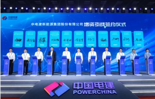 儀式上,中國電建總經(jīng)濟(jì)師兼電建新能源集團(tuán)董事長劉明江作了發(fā)言,電建新能源集團(tuán)黨委書記、總經(jīng)理、法定代表人李岳軍與南網(wǎng)雙碳基金、工銀投資、太平人壽、中銀資產(chǎn)、中國中車等10家戰(zhàn)略投資人代表共同簽署增資協(xié)議。