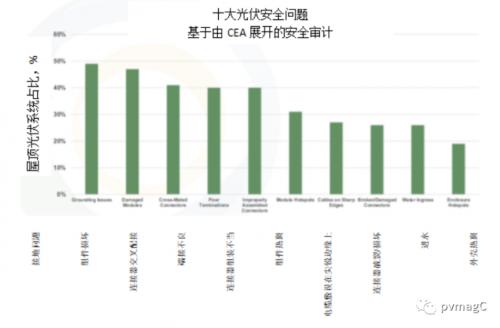 CEA發(fā)現(xiàn),接地問題大多發(fā)生在逆變器或設(shè)備焊盤、光伏陣列塊和組件橫排之間以及延伸的導(dǎo)管沿線,這些構(gòu)成最常見的安全問題。該公司還發(fā)現(xiàn),組件損壞通常是由于安裝或清潔方法不當(dāng)造成的,包括在組件上行走以及遭遇冰雹或大風(fēng)等極端氣候事件。