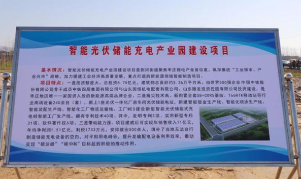 智能光伏儲能充電產(chǎn)業(yè)園建設(shè)項目是荊河街道聚焦棗莊鋰電產(chǎn)業(yè)首位度,縱深推進“工業(yè)強市、產(chǎn)業(yè)興市”戰(zhàn)略,加力提速工業(yè)經(jīng)濟高質(zhì)量發(fā)展,重點打造的新能源領(lǐng)域智能制造項目。該項目有以下幾個特點:一是投資額度大。總投資6.75億元,建筑物總面積約3.36萬平方米。由世界500強企業(yè)中國中鐵股份有限公司骨干成員中鐵四局集團有限公司與山東國恒機電配套有限公司、山東滕發(fā)投資控股有限公司投資建設(shè),是棗莊地區(qū)唯一一家國資入股的新能源高端品牌企業(yè)。二是精尖技術(shù)高。新購置全套S8+CORS基站、T66RTK移動站等行業(yè)高端設(shè)備240余臺(套),新上1座光伏一體化廠房車間光伏儲能電站,新建智能鈑金生產(chǎn)線、智能化噴涂生產(chǎn)線、智能裝配生產(chǎn)線、智能化工廠物流運輸線、工廠MES建設(shè)新型智能光伏儲能式充電樁智能工廠生產(chǎn)線。擁有專利技術(shù)40項。其中,發(fā)明專利3項、實用新型專利31項、軟件著作權(quán)6項。三是帶動能力強。項目建成后可實現(xiàn)年銷售收入11億元,年均凈利潤1.51億元,利稅1733萬元,安排就業(yè)500余人,填補了當(dāng)?shù)責(zé)o法自行制造儲能充電設(shè)備的空白,對平抑用電峰谷,提升發(fā)輸配電設(shè)備利用效率,推動實現(xiàn)“碳達峰”“碳中和”目標(biāo)起到積極的推動作用。