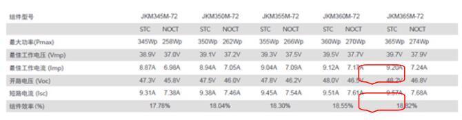 實際上,要理解這些并不難,較之常規(guī)多晶單晶組件,雙面組件的峰值功率電流及短路電流都有很大提升。為證明這一結論,我們不妨截取代表性組件企業(yè)主流功率段單晶組件(60片)的性能參數(shù)來看: