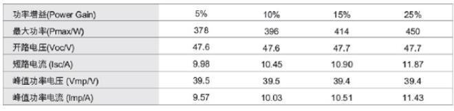 單晶雙面組件性能參數(shù):