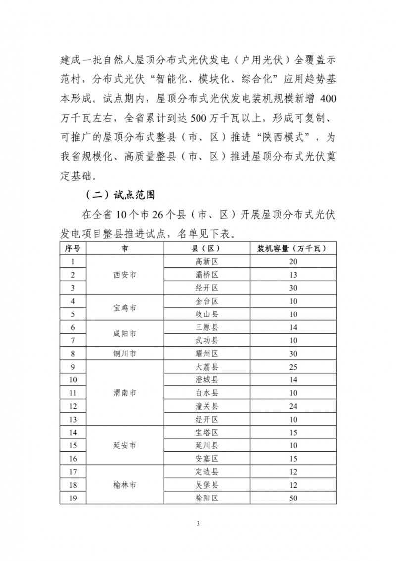 9月27日,陜西省發(fā)改委印發(fā)《陜西省整縣(市、區(qū))推進屋頂分布式光伏發(fā)電試點工作方案的通知》。