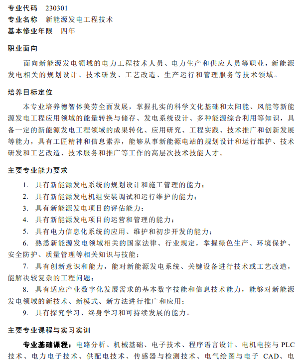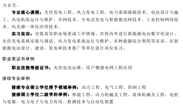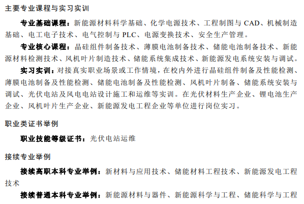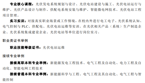 在中等職業(yè)教育、高等職業(yè)教育??茖I(yè)、高等職業(yè)教育本科專業(yè)的簡(jiǎn)介中均包含光伏相關(guān)專業(yè),都同屬于能源動(dòng)力與材料大類新能源發(fā)電工程類。