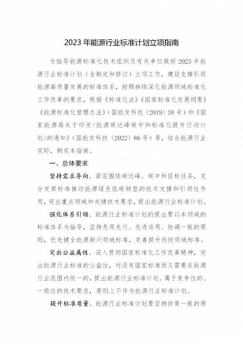國家能源局綜合司關(guān)于印發(fā)《2023年能源行業(yè)標準計劃立項指南》的通知