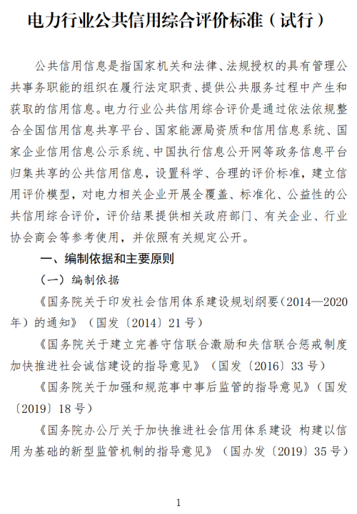 國(guó)家能源局關(guān)于印發(fā)《電力行業(yè)公共信用綜合評(píng)價(jià)標(biāo)準(zhǔn)(試行)》的通知