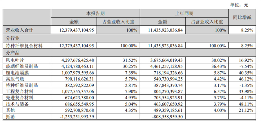 中材科技作為頭部葉片企業(yè),報告期內(nèi),合計銷售風(fēng)電葉片9.6GW,同比增長27.4%(其中,中復(fù)連眾銷量2.3GW),實現(xiàn)風(fēng)電葉片銷售收入43.0億元,歸母凈利潤3.5億元,毛利率提升至17.2%,同比提升11.3個百分點。