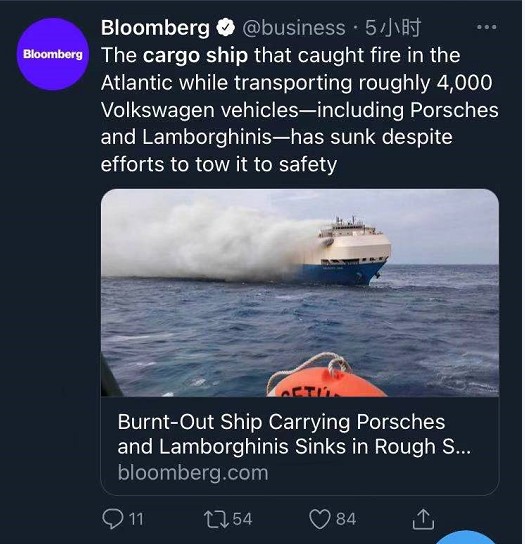 大眾集團也發(fā)表聲明稱,“我們正在與地方當局和船運公司合作,調(diào)查事故原因。”