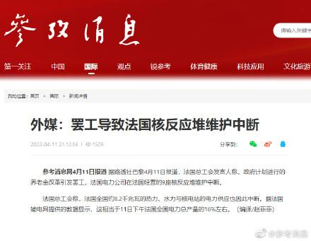 據(jù)路透社巴黎4月11日報道,法國總工會發(fā)言人稱,政府計劃進行的養(yǎng)老金改革引發(fā)罷工,法國電力公司在法國經(jīng)營的9座核反應堆維護中斷。