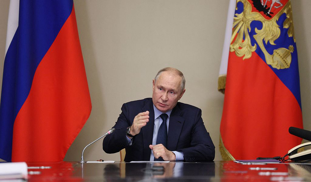 當(dāng)?shù)貢r(shí)間2023年10月16日,俄羅斯莫斯科,總統(tǒng)普京主持會(huì)議,討論俄烏沖突及巴以沖突。