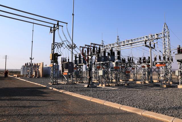 這是8月10日在南非北開(kāi)普省德阿鎮(zhèn)拍攝的龍?jiān)茨戏枪镜掳L(fēng)電項(xiàng)目變電站。(新華社)