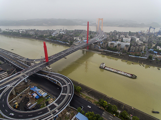 至喜長江大橋是湖北宜昌市建設(shè)的第六座長江大橋,葛洲壩路橋公司以BT模式投資參建了至喜長江大橋,并獨(dú)立承擔(dān)了三江橋與引橋、西壩立交與江北立交的全部施工任務(wù),于2016年7月正式建成通車試運(yùn)營。在施工過程中,葛洲壩路橋公司始終堅(jiān)持科技創(chuàng)新,提升工程品質(zhì),攻克了不對稱弧形變截面薄翼板箱梁掛籃施工技術(shù)、加高鏤空液壓爬架翻模施工技術(shù)、塔吊大橫桿超長附作技術(shù)、快速拼裝0號(hào)塊支架施工技術(shù)、鋼混結(jié)合圍堰施工技術(shù)等關(guān)鍵技術(shù),取得了豐富的科技創(chuàng)新成果。研發(fā)的《中央索面不對稱弧形變截面箱梁斜拉橋施工關(guān)鍵技術(shù)》,被中國公路建設(shè)行業(yè)協(xié)會(huì)鑒定為國際先進(jìn),成功解決了斜拉橋施工中一系列技術(shù)難題,促進(jìn)了該橋型在橋梁建設(shè)行業(yè)內(nèi)的發(fā)展。