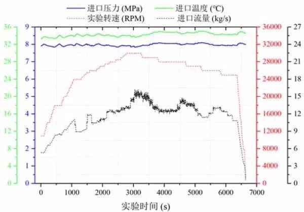 科研人員對(duì)測(cè)試平臺(tái)進(jìn)行了改進(jìn),優(yōu)化了壓縮機(jī)實(shí)驗(yàn)循環(huán)系統(tǒng),使得實(shí)驗(yàn)進(jìn)口狀態(tài)始終穩(wěn)定在設(shè)計(jì)參數(shù)(8MPa,35℃)附近;改進(jìn)了壓縮機(jī)進(jìn)口狀態(tài)測(cè)量方法,采用間接測(cè)量法,極大地提高了壓縮機(jī)進(jìn)口溫度測(cè)量精度及響應(yīng)特性,進(jìn)口溫度間接測(cè)量誤差小于0.025℃,遠(yuǎn)小于現(xiàn)有A級(jí)溫度傳感器測(cè)量誤差。