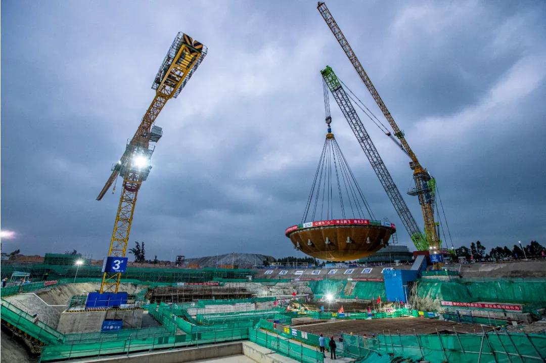 玲龍一號全球首堆鋼制安全殼底封頭吊裝成功