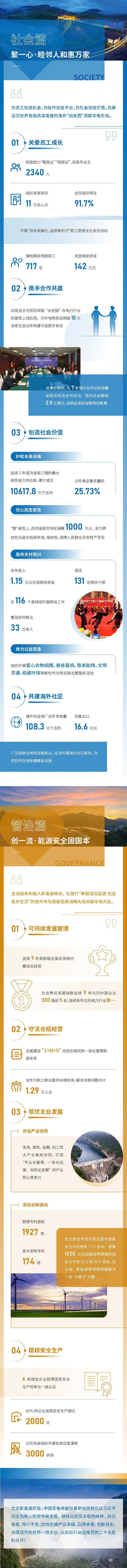 報告正文以ESG體系為架構(gòu),分為“環(huán)境篇:盎然綠意漫山野”“社會篇:睦鄰人和惠萬家”“管治篇:能源安全固國本”三個篇章,全方位展示企業(yè)在節(jié)能環(huán)保、降碳減排、關(guān)愛員工、合作共贏、守法合規(guī)、安全生產(chǎn)等方面的發(fā)展實績和履責(zé)實踐,并在每個章節(jié)增加“中國華電實踐與聯(lián)合國可持續(xù)發(fā)展目標(biāo)(SDGS)回應(yīng)度顯示”,以更好地面向國際市場、國內(nèi)社會和各利益相關(guān)方披露中國華電的責(zé)任績效,彰顯世界一流品牌形象。