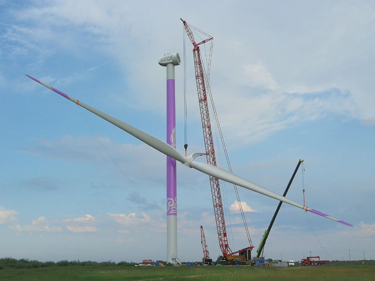 在萬里之遙的巴西東北部巴伊亞州,由中廣核建設(shè)的巴西TN風(fēng)電項(xiàng)目正在如火如荼建設(shè)中。該項(xiàng)目總裝機(jī)容量18萬千瓦,是中廣核在巴西自主開發(fā)和管理的第二個(gè)綠地風(fēng)電項(xiàng)目,也是繼巴西LDB風(fēng)電擴(kuò)建項(xiàng)目后,更大規(guī)模將中國風(fēng)機(jī)設(shè)備產(chǎn)業(yè)鏈引進(jìn)巴西新能源市場的項(xiàng)目。當(dāng)前,項(xiàng)目已完成20余臺風(fēng)機(jī)整機(jī)吊裝,以及所有風(fēng)機(jī)基礎(chǔ)澆筑工作,進(jìn)入聯(lián)合調(diào)試的關(guān)鍵時(shí)期?,F(xiàn)場500多名中巴建設(shè)者正齊心協(xié)力,高標(biāo)準(zhǔn)、高質(zhì)量推進(jìn)風(fēng)機(jī)運(yùn)輸、風(fēng)機(jī)吊裝、高壓線路架線、升壓站設(shè)備調(diào)試等工作,向二季度高質(zhì)量投產(chǎn)目標(biāo)邁進(jìn)。