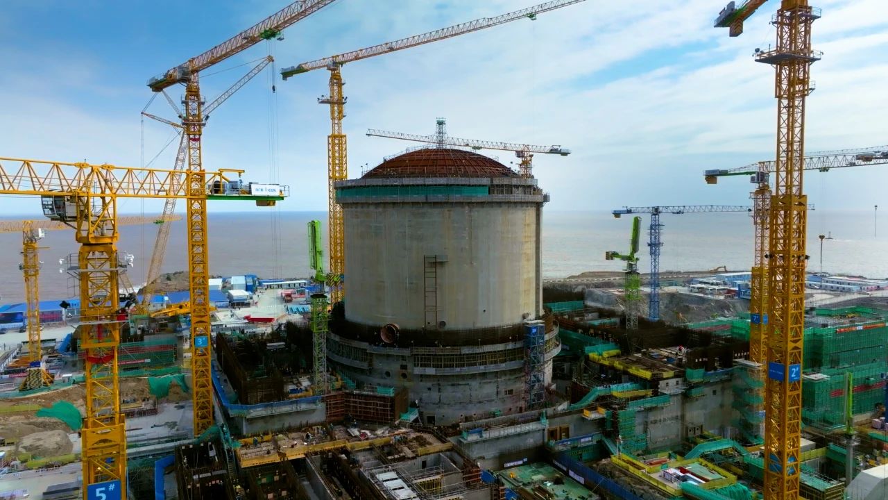 目前,浙江三澳核電項(xiàng)目一期工程設(shè)計(jì)基本完成、設(shè)備采購?fù)瓿?9%,工程建設(shè)進(jìn)入高峰期。1號機(jī)組于2022年5月底實(shí)現(xiàn)核島安裝開工,11月3日完成核島穹頂?shù)跹b,從土建施工階段全面轉(zhuǎn)入設(shè)備安裝階段。目前,土建方面,正開展核島內(nèi)殼環(huán)梁D1層、外殼第9層、常規(guī)島汽輪機(jī)廠房施工;設(shè)備安裝方面,正在進(jìn)行支架安裝,逐漸開展設(shè)備引入工作。2號機(jī)組常規(guī)島、泵站均已正式開工,核島鋼襯里筒體5層焊接完成,正在進(jìn)行內(nèi)殼5層、外殼2層及廊道施工。在工程建設(shè)穩(wěn)步推進(jìn)的同時(shí),項(xiàng)目在組織運(yùn)作、人員準(zhǔn)備、工程參與、技術(shù)準(zhǔn)備等領(lǐng)域重點(diǎn)發(fā)力,責(zé)任前移,高效推進(jìn)生產(chǎn)準(zhǔn)備。