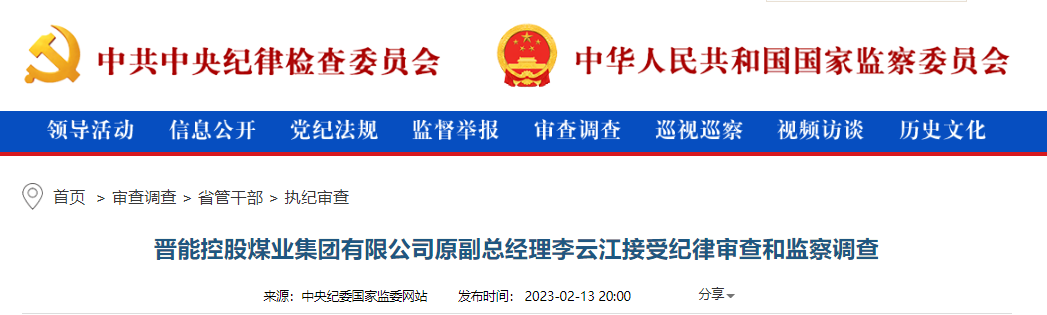 中央紀委國家監(jiān)委網站2月13日消息, 據山西省紀委監(jiān)委消息:晉能控股煤業(yè)集團有限公司原副總經理李云江涉嫌嚴重違紀違法,目前正接受山西省紀委監(jiān)委紀律審查和監(jiān)察調查。