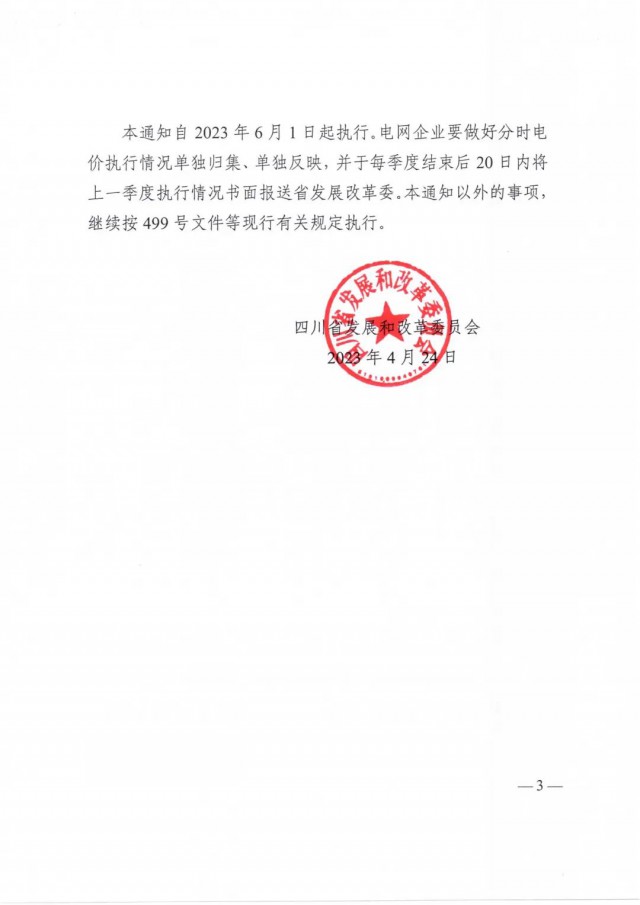4月24日,四川省發(fā)展和改革委員會發(fā)布《關(guān)于調(diào)整我省分時電價機制的通知》,對峰平谷時段、大型商業(yè)用戶電價機制調(diào)整進行了說明,將在6月1日起執(zhí)行,詳情如下: