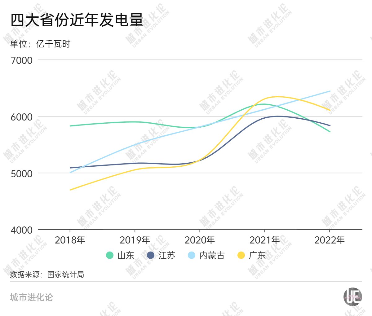 2022年,山東發(fā)電量為5722.6億千瓦時(shí)、同比下降3.7%,不僅增速居全國(guó)倒數(shù),發(fā)電量與排名第一的內(nèi)蒙古差距也擴(kuò)大到700多億千瓦時(shí)。