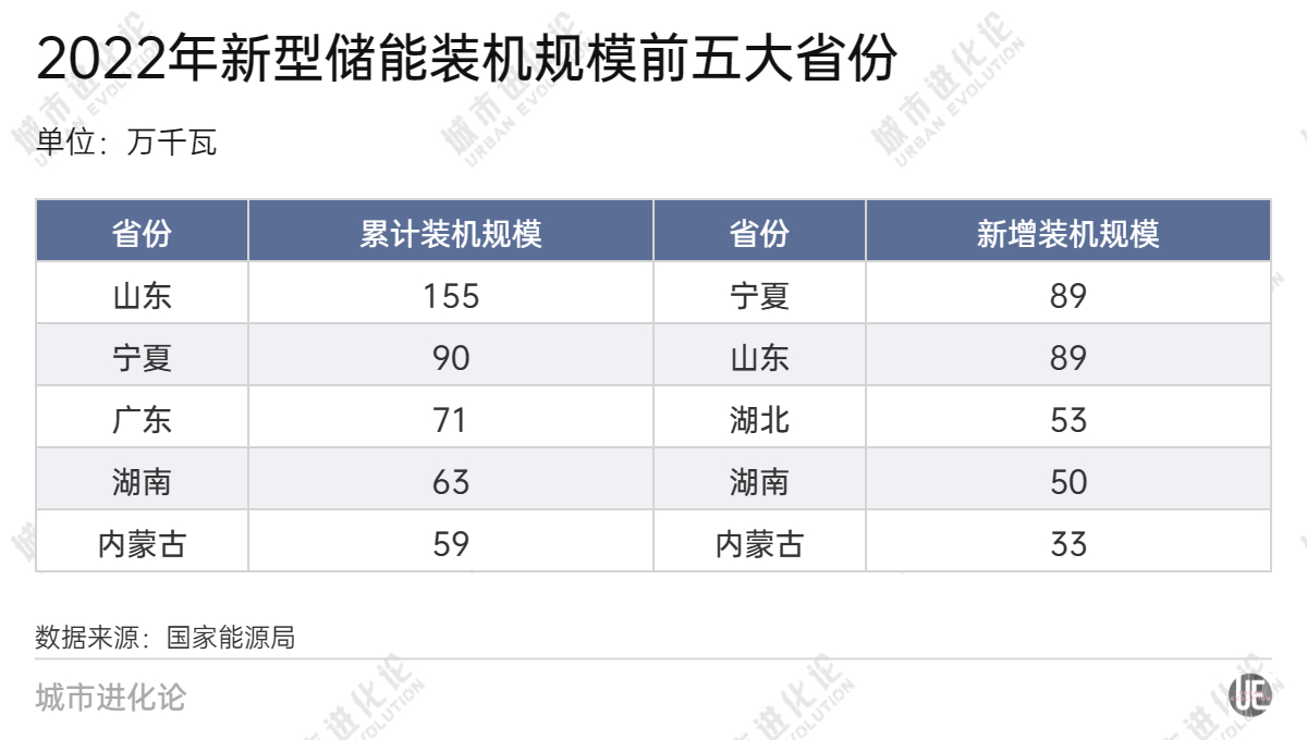 可以看到,累計(jì)裝機(jī)規(guī)模僅次于山東的寧夏,去年新增規(guī)模已與山東旗鼓相當(dāng)。按照當(dāng)?shù)匾?guī)劃,到2025年,寧夏力爭(zhēng)新型儲(chǔ)能裝機(jī)規(guī)模達(dá)到500萬(wàn)千瓦以上,山東則為“達(dá)到500萬(wàn)千瓦左右”。