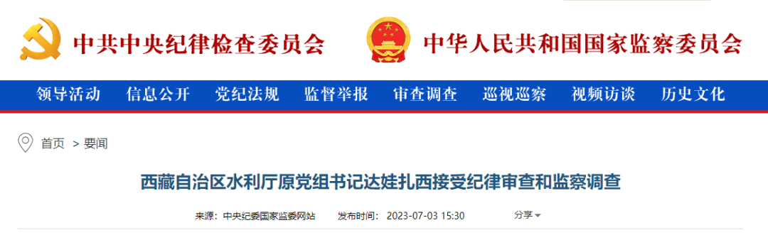 中央紀(jì)委國家監(jiān)委網(wǎng)站7月3日消息,據(jù)西藏自治區(qū)紀(jì)委監(jiān)委消息:西藏自治區(qū)水利廳原黨組書記達(dá)娃扎西涉嫌嚴(yán)重違紀(jì)違法,目前正接受西藏自治區(qū)紀(jì)委監(jiān)委紀(jì)律審查和監(jiān)察調(diào)查。