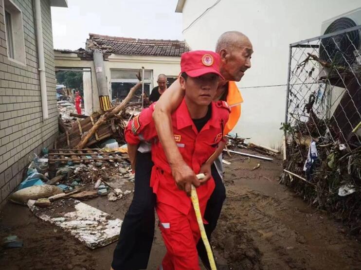 8月4日,北京門(mén)頭溝救援中,搶險(xiǎn)隊(duì)員毛平背起行動(dòng)不便老人奪門(mén)而出。