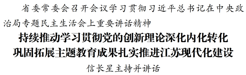 1月8日,江蘇省委常委會(huì)召開會(huì)議,深入學(xué)習(xí)領(lǐng)會(huì)習(xí)近平總書記在中央政治局專題民主生活會(huì)上的重要講話和中央通報(bào)精神,認(rèn)真對(duì)照檢查,明確改進(jìn)方向。省委書記信長(zhǎng)星主持會(huì)議并講話。省委常委同志交流學(xué)習(xí)體會(huì)。會(huì)上通報(bào)了省委常委會(huì)專題民主生活會(huì)查擺問題整改落實(shí)、主題教育省級(jí)層面專項(xiàng)整治情況。