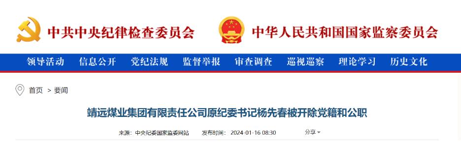 中央紀委國家監(jiān)委網(wǎng)站1月16日消息,據(jù)甘肅省紀委監(jiān)委消息:日前,經(jīng)甘肅省委批準,甘肅省紀委監(jiān)委對靖遠煤業(yè)集團有限責任公司原紀委書記楊先春嚴重違紀違法問題進行了立案審查調(diào)查。