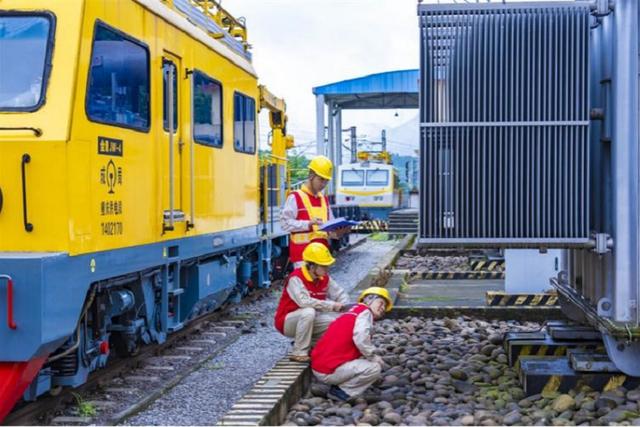 國(guó)家電網(wǎng)重慶電力紅巖(長(zhǎng)壽園區(qū))共產(chǎn)黨員服務(wù)隊(duì)隊(duì)員對(duì)晏家火車牽引站開(kāi)展安全用電檢查。