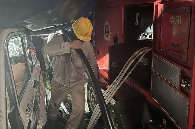 國(guó)網(wǎng)湖南岳陽(yáng)供電公司員工為團(tuán)西排水點(diǎn)排澇泵車接入低壓電纜。