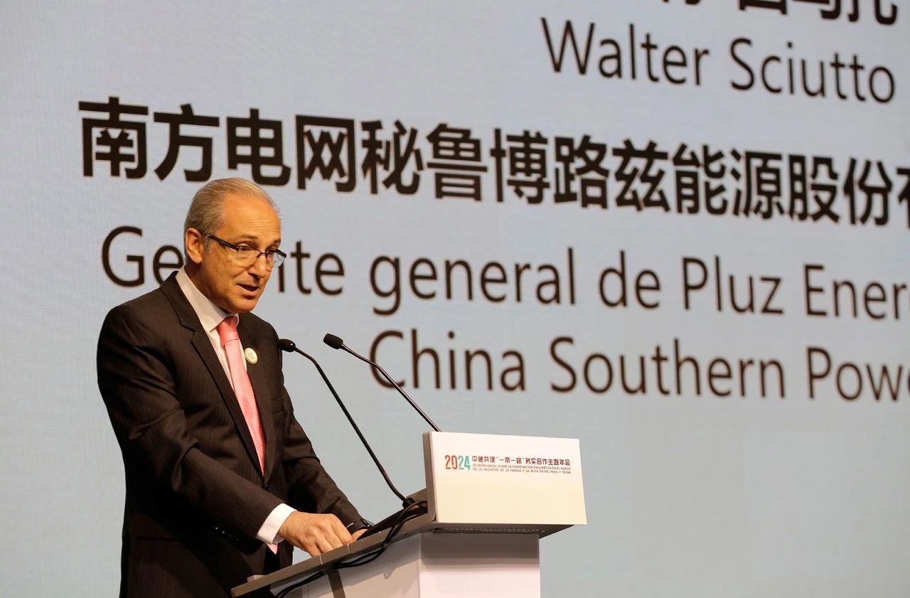 年會期間,公司發(fā)布了中西雙語版《中國式現(xiàn)代化南網(wǎng)新實踐》報告,西語版宣傳片《走在光芒之前》在會場展示傳播,首個境外注冊商標“Pluz(博路茲)”在年會上亮相。會前,與會嘉賓還觀看了中拉共建“一帶一路”務實合作圖片展,公司多張拉美項目圖片入選展覽。南方電網(wǎng)秘魯博路茲能源股份有限公司(簡稱“秘魯博路茲公司”)總經(jīng)理瓦爾特·休托(Walter Sciutto)受邀在會上發(fā)言。