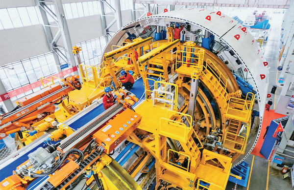 圖為當(dāng)日,在鐵建重工長沙第一產(chǎn)業(yè)園,工人在調(diào)試“江漢新石器號(hào)”隧道掘進(jìn)機(jī)。 新華社記者 陳思汗/攝