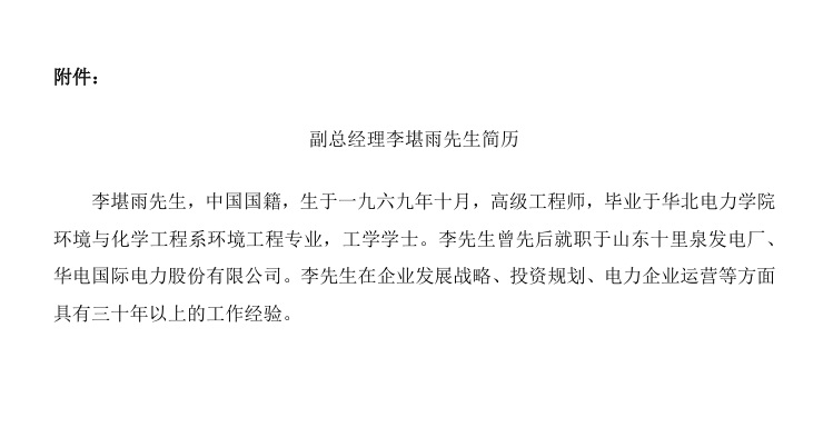 同時,會議審議并批準(zhǔn)了《關(guān)于聘任副總經(jīng)理的議案》,同意聘任李堪雨先生為本公司副總經(jīng)理。李堪雨先生作為本公司副總經(jīng)理的任期自董事會審議通過之日起至第十屆董事會任期屆滿之日止。