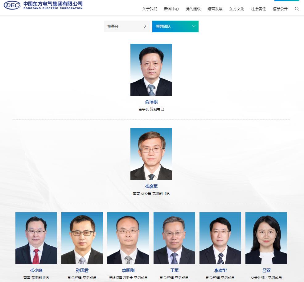 東方電氣集團(tuán)最新領(lǐng)導(dǎo)層如下: