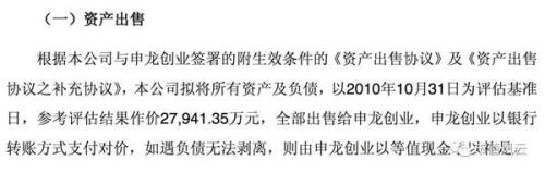 但是,我大A股的大股東們豈是凡夫俗子,都有起死回生的妙招,何況只是半死不活。只見控股股東申龍創(chuàng)業(yè)一掃三年萎靡,一手發(fā)動賣賣賣技能保利潤,一手祭出重組大法,直接賣殼走人。