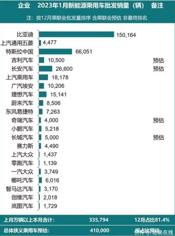 1月主力廠商新能源批發(fā)銷量。數(shù)據(jù)來源:乘聯(lián)會