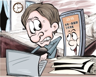 “每天要在微信群里匯報(bào)當(dāng)天的工作,聯(lián)系了多少個(gè)客戶,進(jìn)展如何等。如果不回復(fù)消息,就會(huì)被歸咎于擅離職守,被領(lǐng)導(dǎo)嚴(yán)厲批評(píng)。”今年32歲的馮倩在某銀行支行工作,對(duì)她來說,最痛苦的事情就是“24小時(shí)待命”的緊迫感——領(lǐng)導(dǎo)要求24小時(shí)隨叫隨到,對(duì)工作有新想法要24小時(shí)隨時(shí)溝通。