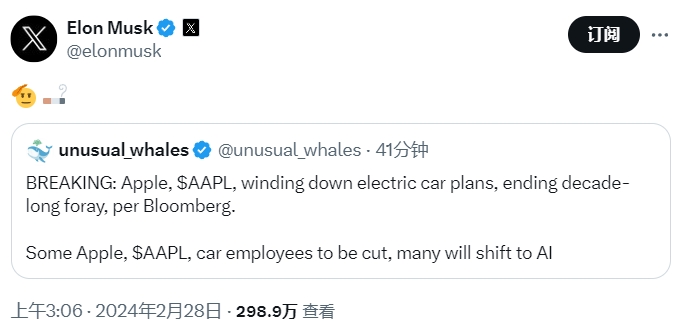 蘋果被曝已于周二宣布取消電動車項目 2000名員工當場驚呆